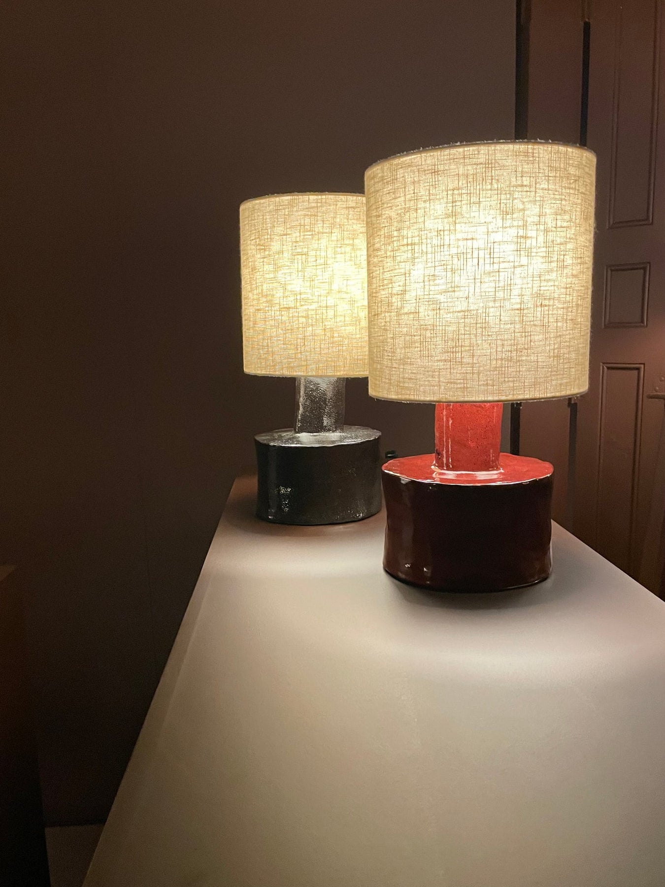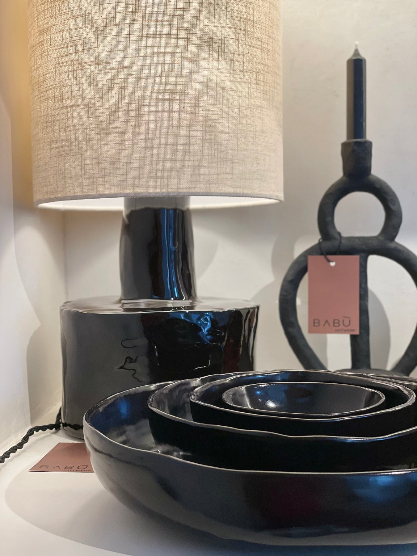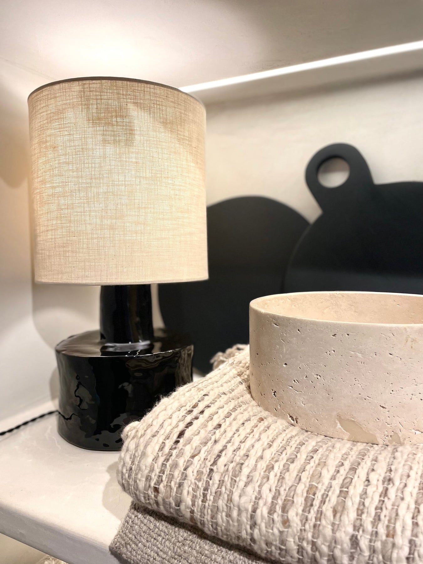 Tafellamp van de Belgische ontwerpster Marie Michielsen voor Serax. De lamp heeft een keramieken voet in een zwarte kleur en een lampenkamp uit natuurlijk linnen. Een sfeervol en schijnbaar eenvoudig ontwerp die door zijn texturen en materiaalkeuzes een prachtige aanwinst is voor je interieur. Lampje niet inbegrepen; E27 max. 5 Watt, max. 240 Volt, IP20.